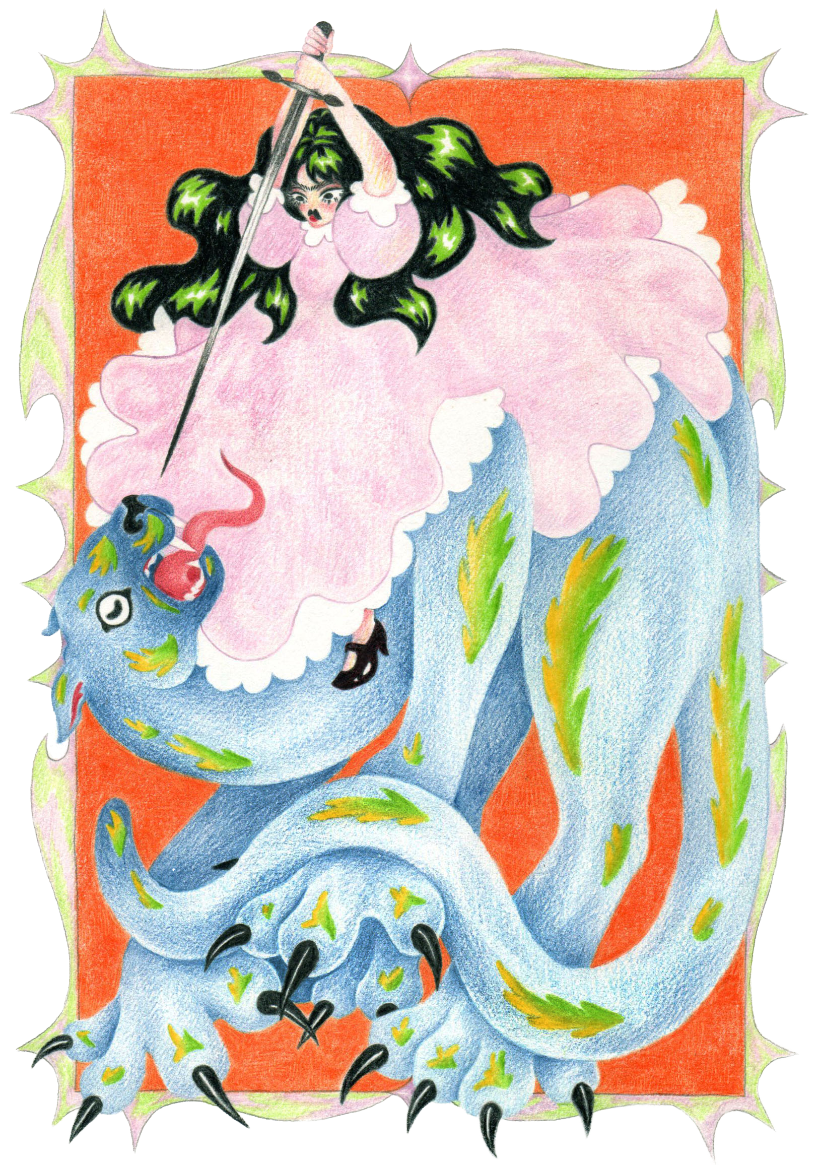 Illustration for a poem about a sword and a panther. Made with colored pencils. 2023.