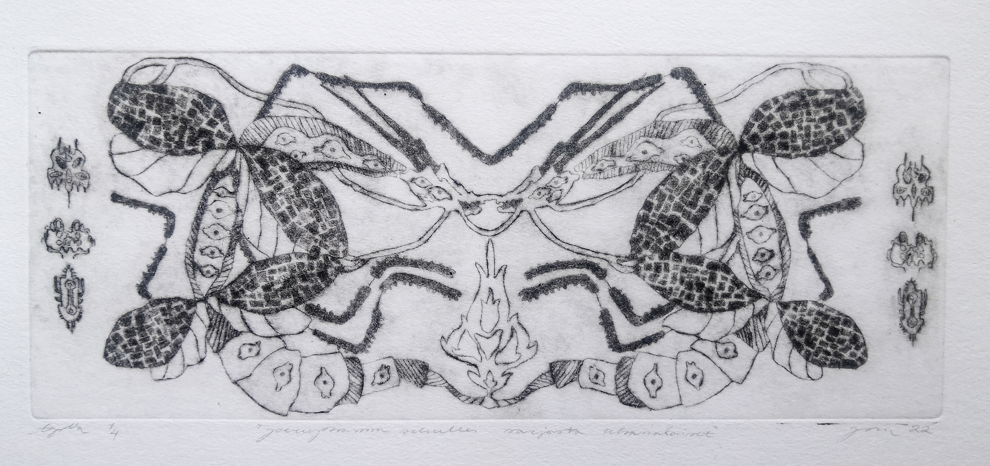 Triptych of three critically endangered species. Made with copper engraving. 2022.